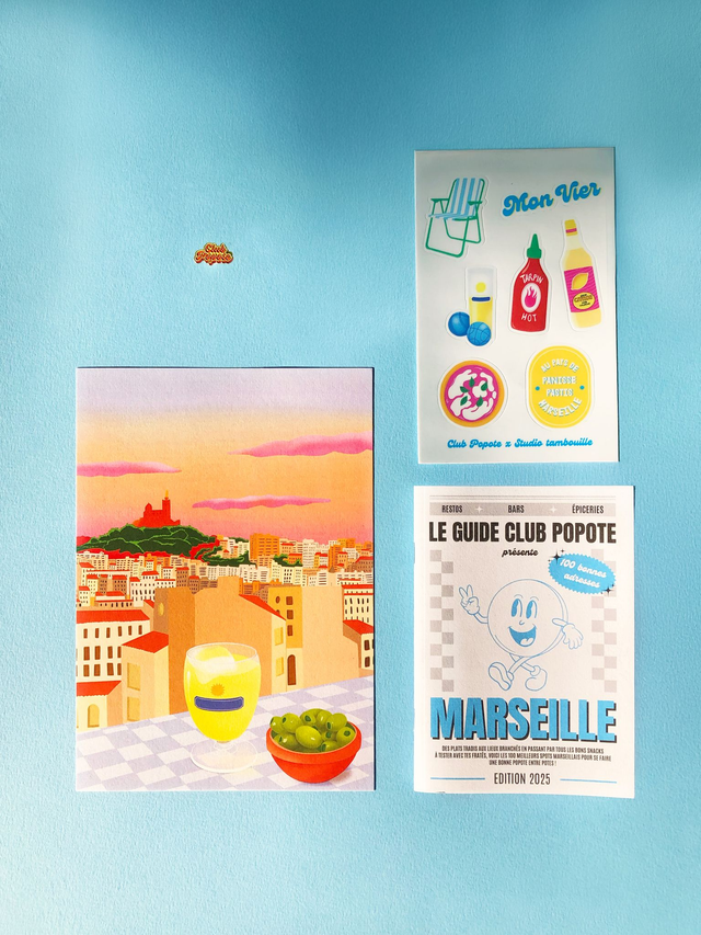 La box contient l’équivalent de plus de 50€ de produits (affiche A5 10€, guide 12€, planche de stickers 8€, pin’s 3€, offres partenaires 20€) en plus de l’envoi qui est compris dans le prix ! En collab avec @Club Popote